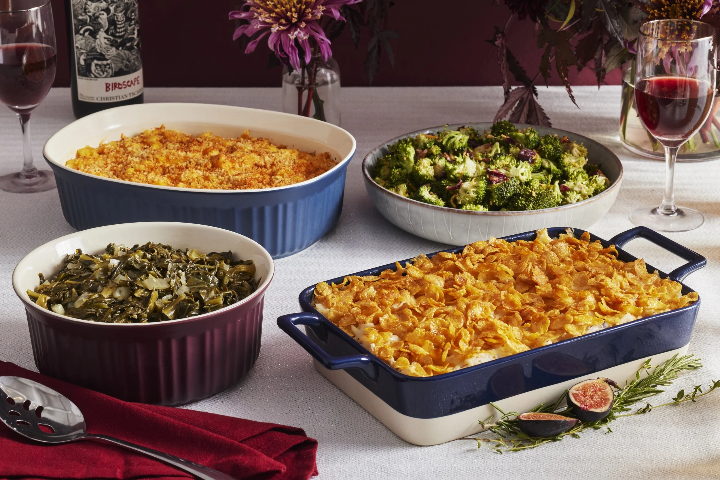 Sweet Potato Casserole, Mashed Potatoes, Turnip Greens, Hashbrown Casserole