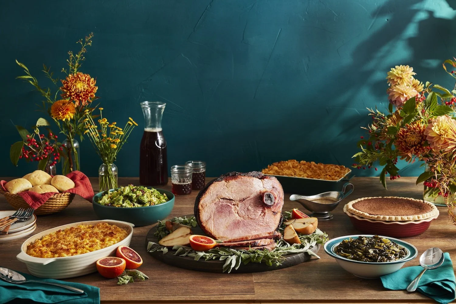 Ham comes with Mac & Cheese, Turnip Greens, Broccoli Salad, and Hashbrown Casserole (1/2 gallon each)
